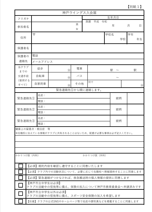 説明会または体験会(夏開催予定)にて入会申込書をお渡しいたします。